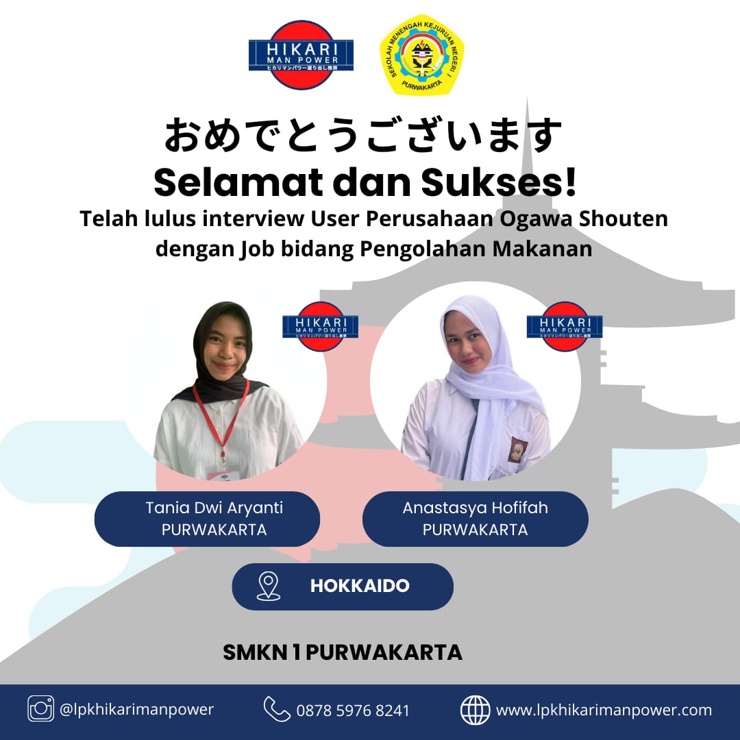 Keberhasilan menembus tahap Interview User ini merupakan langkah krusial dalam proses rekrutmen, yang menandakan bahwa kompetensi dan karakter kedua siswi ini telah sesuai dengan standar industri yang dibutuhkan oleh Ogawa Shouten. Hal ini juga menjadi bukti nyata bahwa kurikulum dan pembinaan karakter di SMKN 1 Purwakarta mampu menghasilkan lulusan yang siap kerja dan kompetitif.